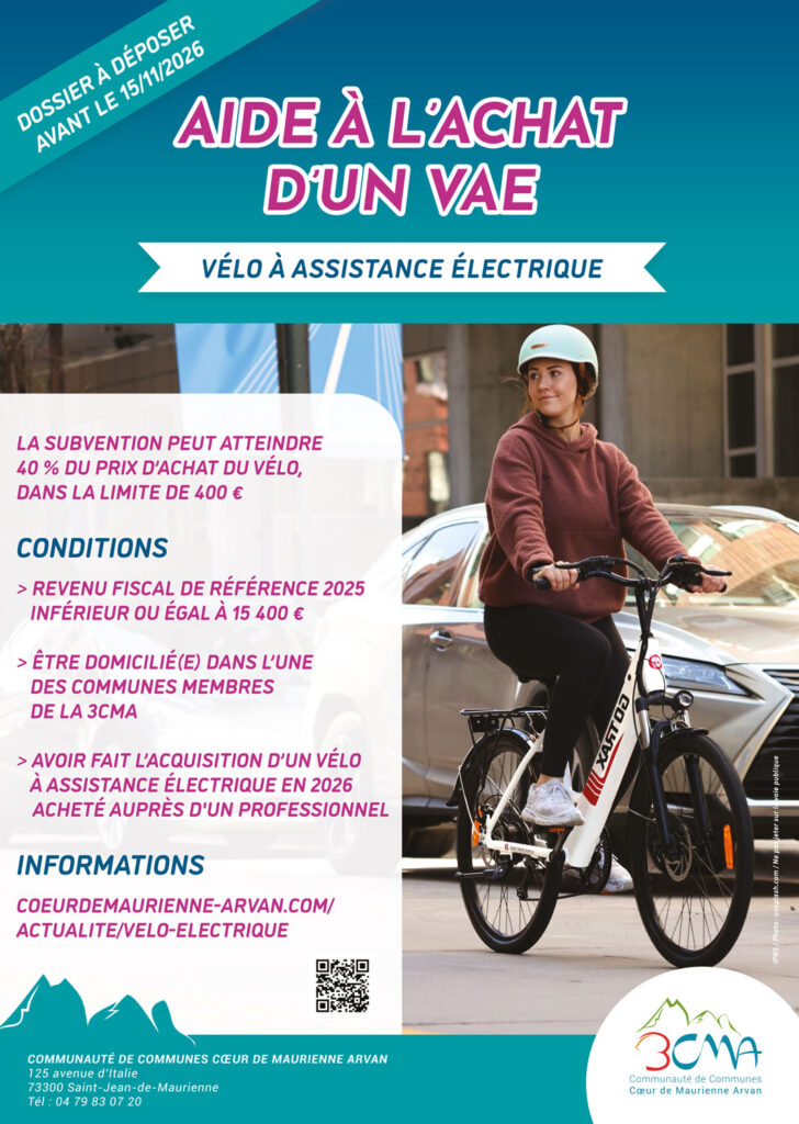 - Être domicilié(e) dans l’une des communes membres de la Communauté de Communes Cœur de Maurienne Arvan.